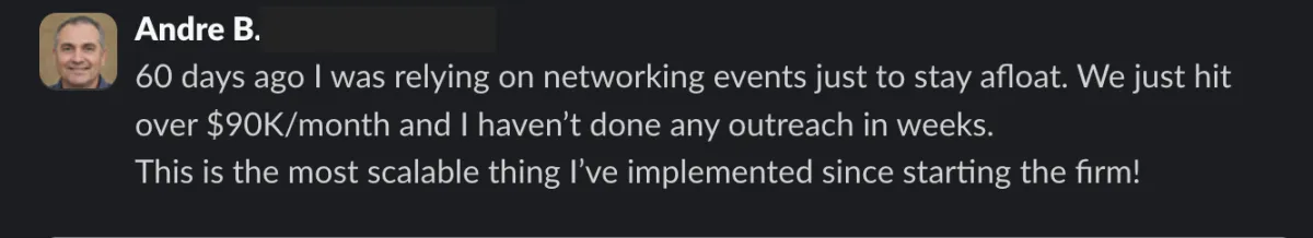Now I own the infrastructure. It’s not rented. It’s ours — branded, automated, and fully embedded in our raise process. In 90 days, we went from scrambling to consistently booking investor calls and closing checks. They didn’t just give me more leads — they gave me a business model that finally scales.